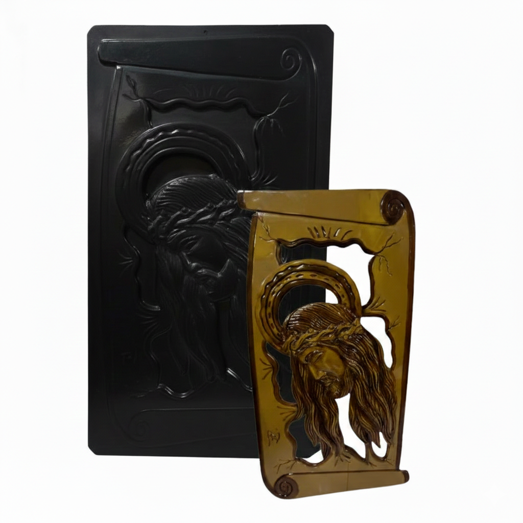 Eleve o nível da sua produção de peças religiosas com a Forma Pergaminho de Jesus. Este modelo exclusivo combina a rusticidade do formato de pergaminho com a riqueza de detalhes da imagem de Cristo, resultando em uma peça de alto valor artístico e espiritual.